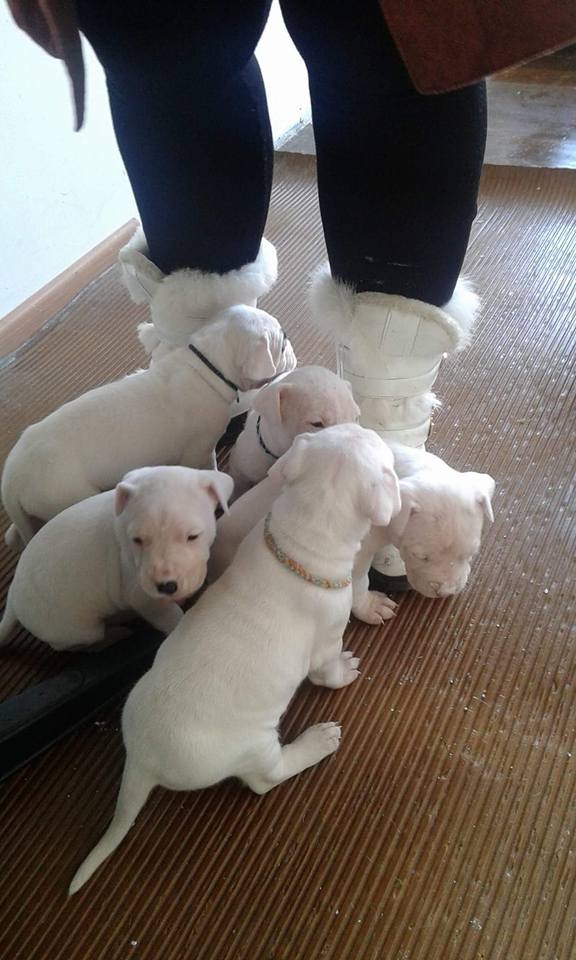 Продавам малки кученца Дого Аржентино. Мъжкаря е с най-доброто родословие в България, майката е с изгубено родословие но се вижда че е перфектен представител на породата си. Кученцата са захранени с гранули,през периода на кърмене са дохранвани с адаптирано мляко за кучета. Малките са 4 мъжки и 5 женски. При интерес ще изпратя още много снимки. За повече инфо. на посочените телефони.- 0884873517 / 0878640224