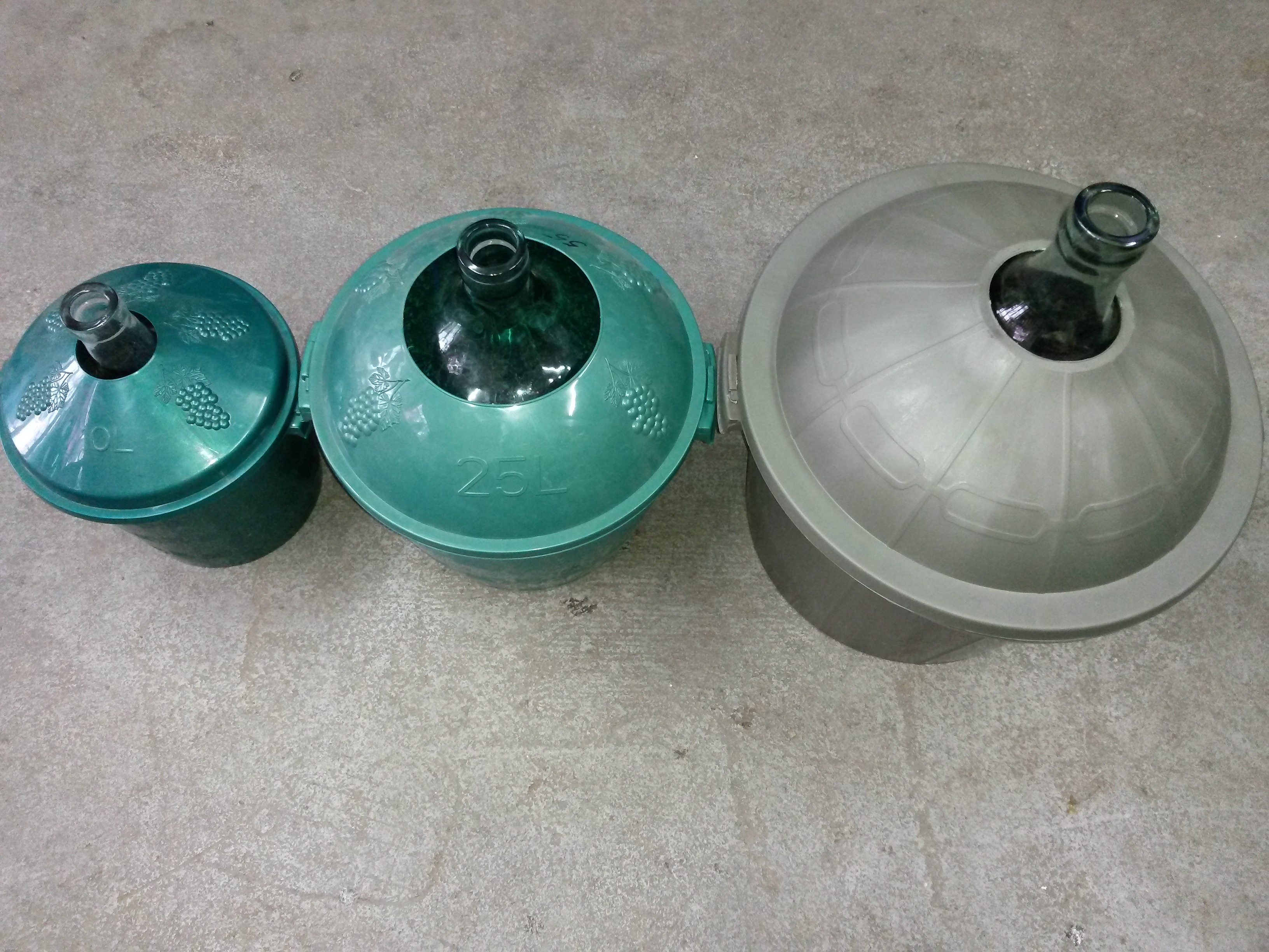 предлагам нови стъклени дамаджани,с пластмасов кош в конплект. по 50л.,25л.,10л.