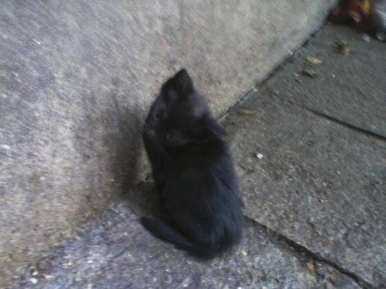 То е съвсем мъничко, плашливо, но обича да го галят. Много е мило и почти не може да се нахрани от другите по-големи котки. Храни ги баба Мария, на 92 г., която трудно се движи, но всеки ден слиза до долу, за да им дава храна сутрин и вечер. Чисто черничко е и вероятно е мъжко. Малкото черничко спи в кутия за обувки, засега е здравичко, но повечето малки котенце умират от множеството котешки вируси, които се въдят, когато има колония от котки. Моля ви, направете едно добро дело и спасете малкия черен красавец. Той ще ви се отблагодари, като ви донесе много късмет! Даваме го само на отговорни хора.