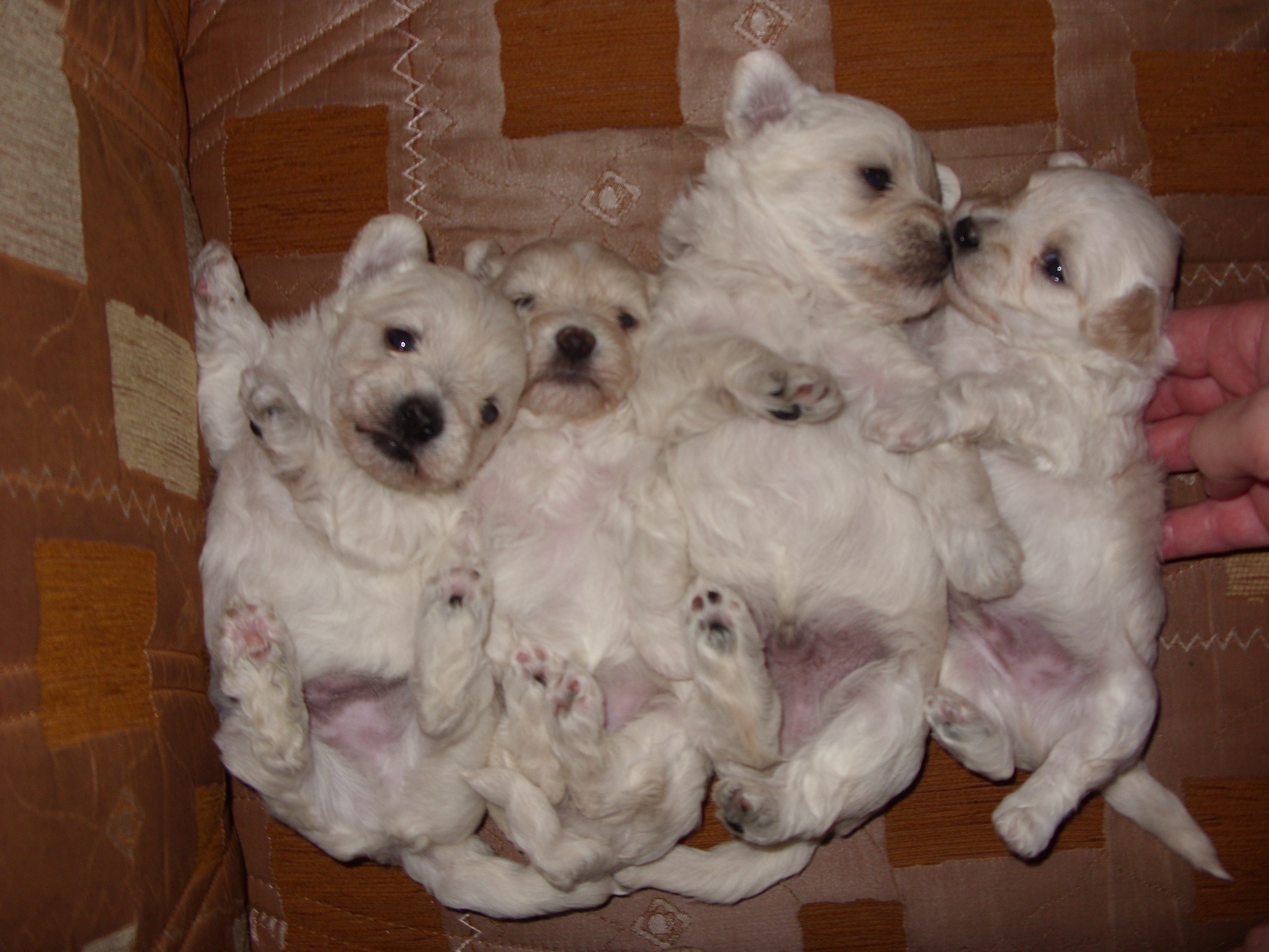 Продавам четири малтийски болонки,родени 27.11.14г,вътрешно обезпаразитени,три мъжки и едно женско, гр.Ямбол тел:087 78 70 004