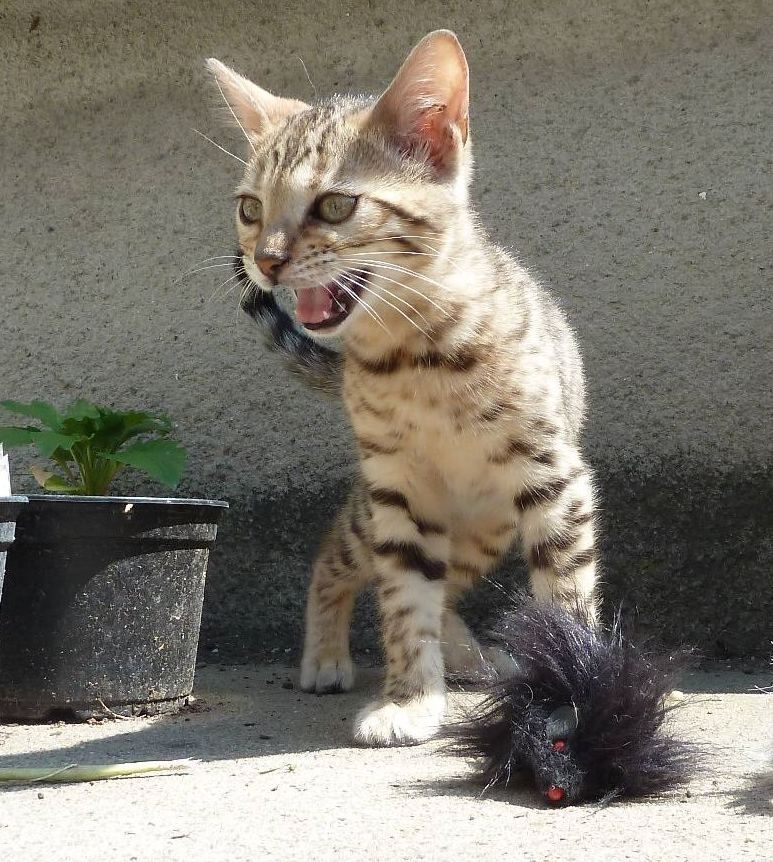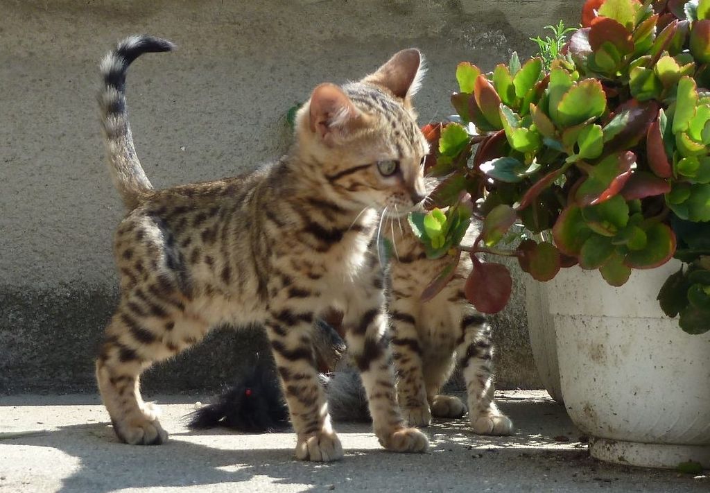 Уникално съчетание на грациозността и красотата на леопардовата котка и невероятно ласковия характер на домашната котка. Игриви, изобретателни и гальовни - всички тези качества са присъщи на малките леопардчета. От дивите прародители са наследили желязно здраве и дълголетие (над 30 г).