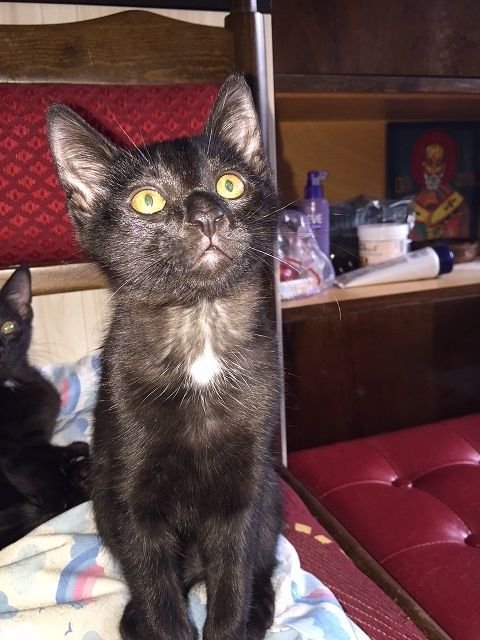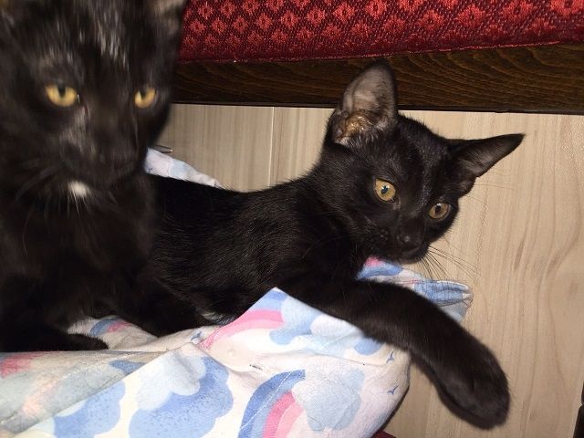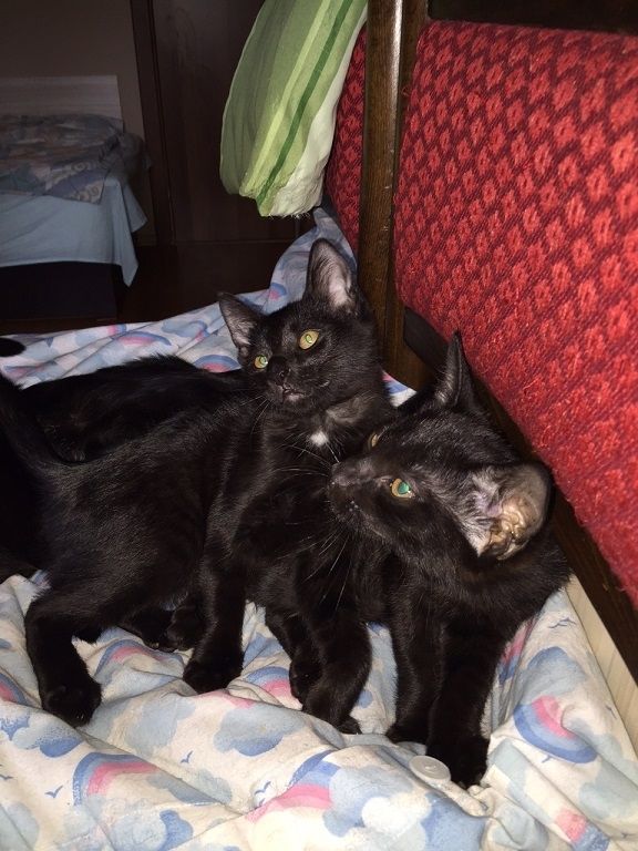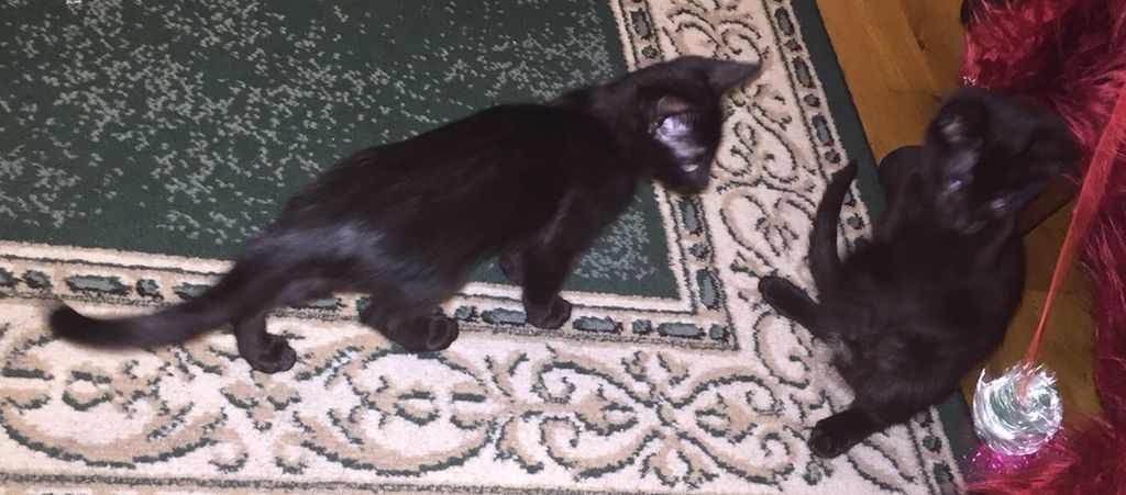 Родени са на 10 април 2015 г. Едното е мъжко, а другото женско. Казват се Миро и Мери. И двете са черни с малки бели медальончета на вратлето. Научени са да ходят в котешка тоалетна и да се хранят със суха храна - не са никак капризни. Имат прекрасна черна козина - лъскава, като на пантера. Много са красиви (като майка им), с издължени крачета и грациозна походка. Много са игриви и страшно гальовни. Като ги гушнем и започват да мъркат. Няма как да не обикнете такива сладурчета!