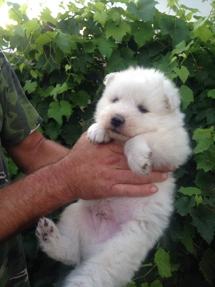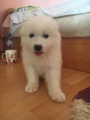 Продавам малко самоедче на 35 дена, мъжко, с първа ваксина и паспорт. Родителите са чистокръвни.