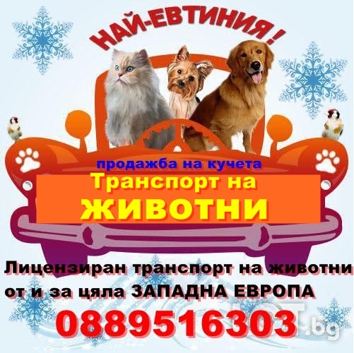 Превоз на животни от и за цяла Западна Европа.Лицензиран превоз от адрес до адрес.Продажба на расови кучета.
