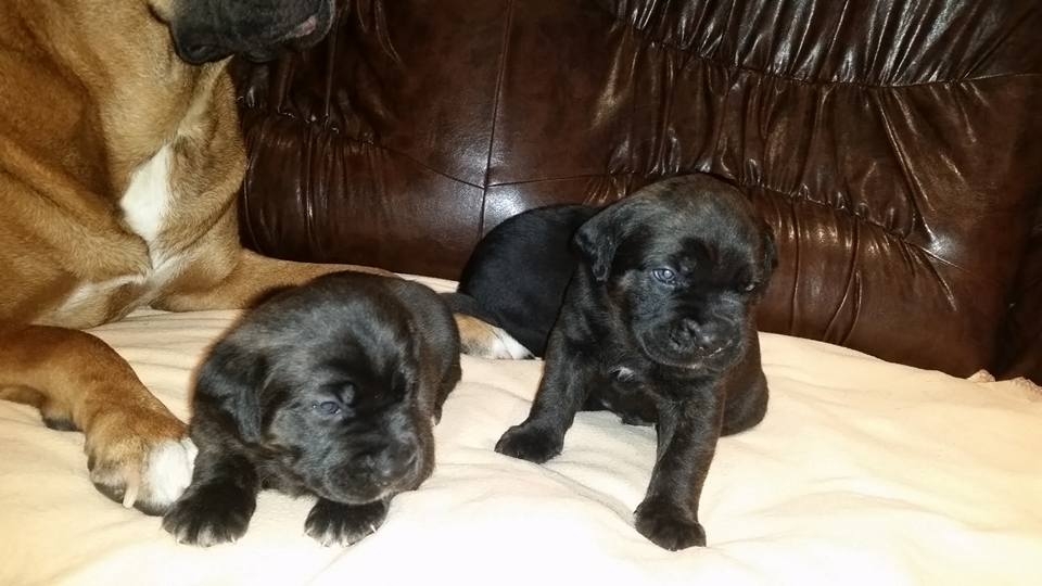 ПРОДАВАТ СЕ кученца порода Кане Корсо. Родени на 22.09.2016г., предстои първа ваксинация и вадене на паспорти.Вътрешно обезпаразитени. Могат да се вземат след 05.11.2016г. Черни и тигрови, 4 мъжки и 3 женски. Породисти родители. За повече информация на лично съобщение и на тел.0889514116.Котилото е от 10, но 3 са вече запазени.