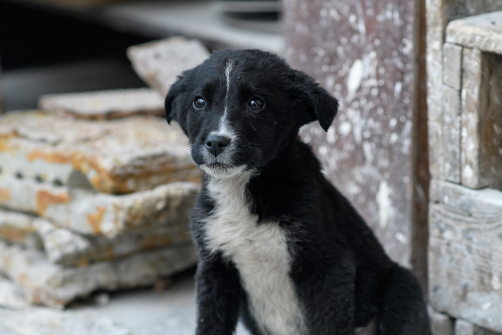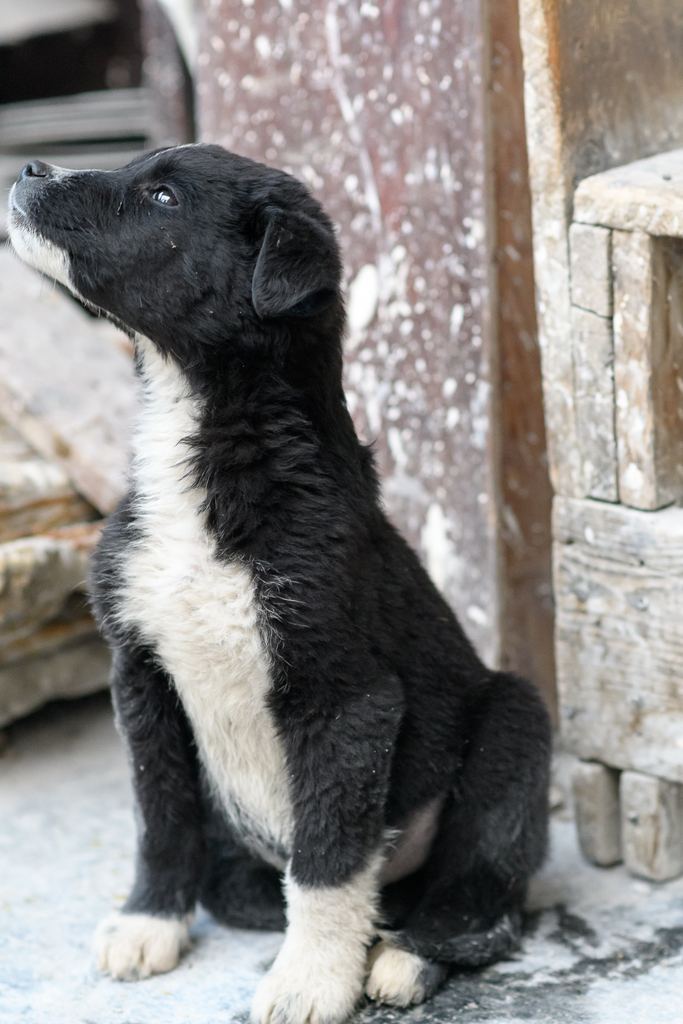 Търсим стопанин за тази сладурана. Беше изхвърлена до една кофа и седя там два дни. Прибрах я в художествено ателие, обезпаразитена е и получи първата си ваксина вече, но нямаме никаква възможност да я задържим повече.