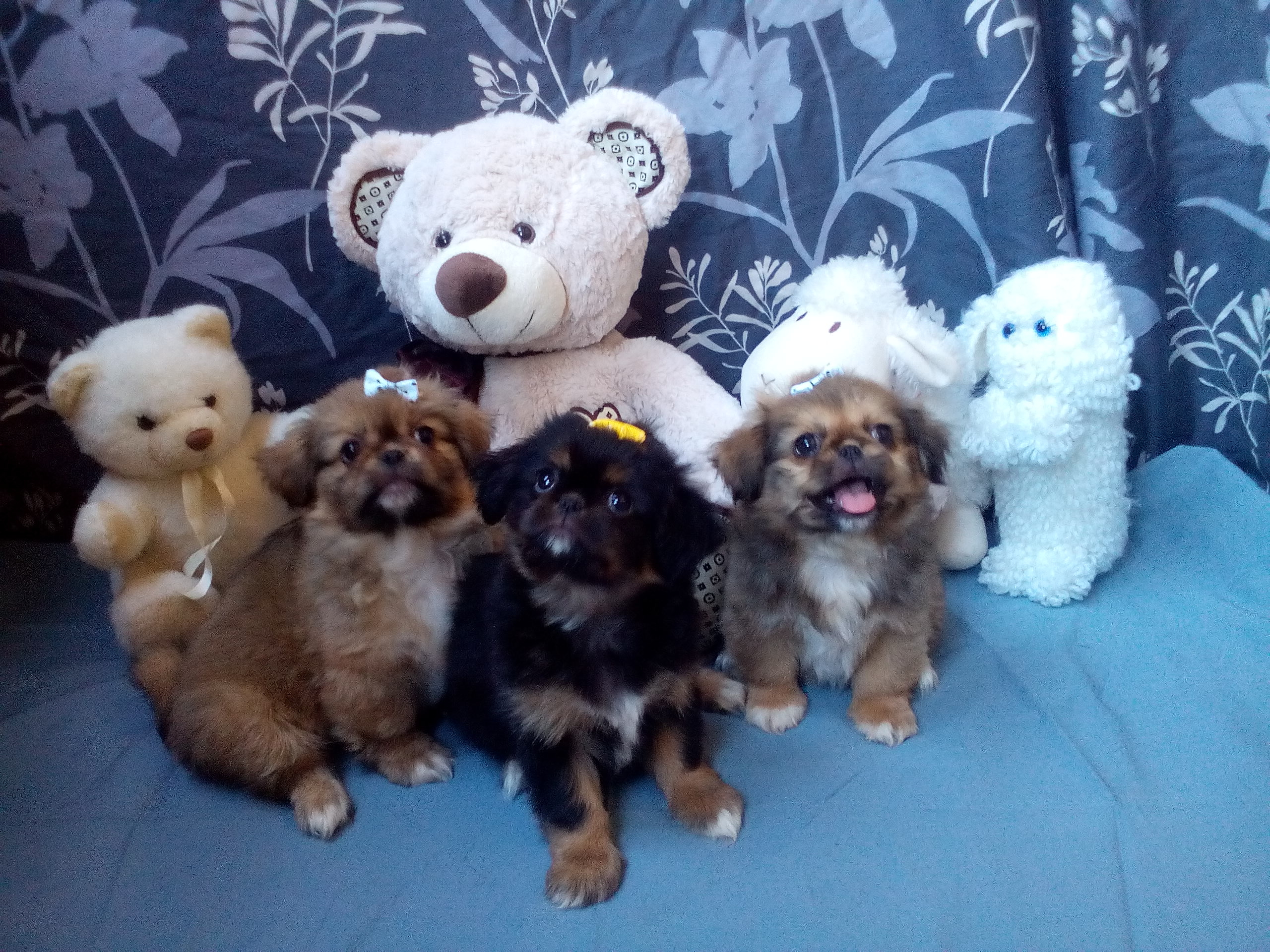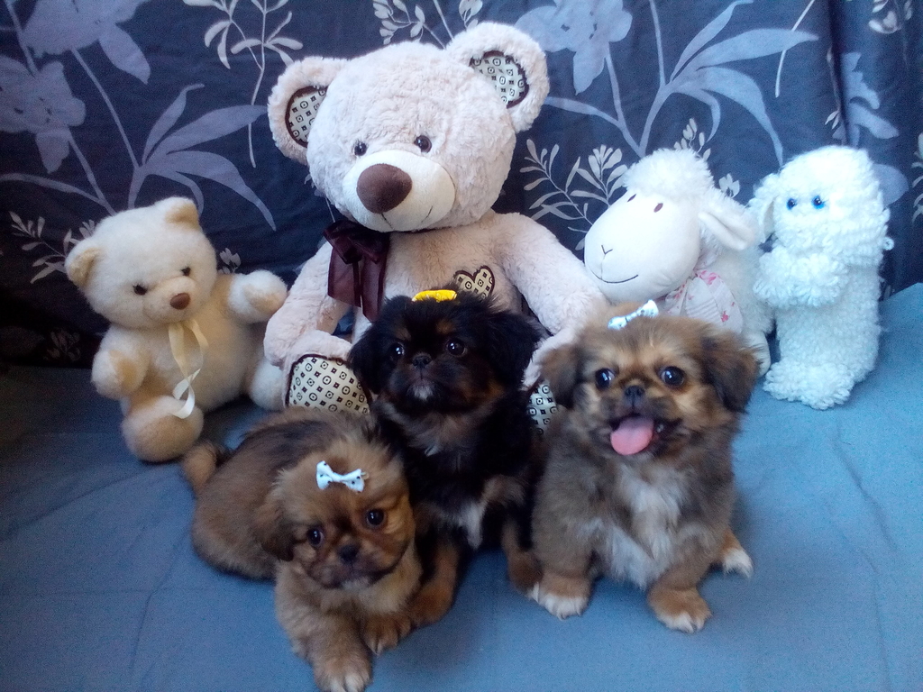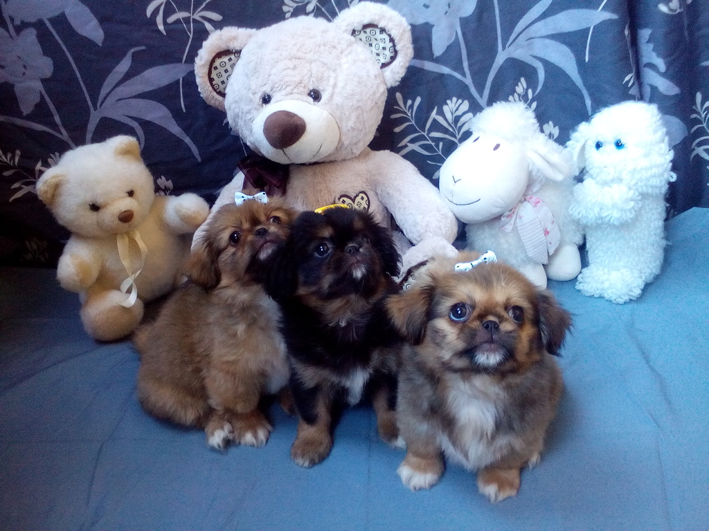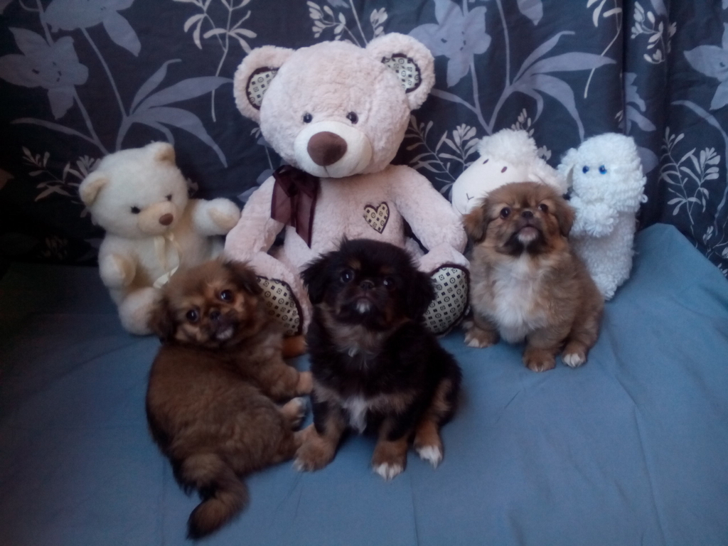 2 мъжки и 1 женско Кученца Порода Пекинез, на 2 месеца. (Черното е женско, кафявите са мъжки) Прегледани от ветеринар, ваксинирани, обезпаразитени вътрешно и външно и с паспорт - 220 лв/бр. С възрастта козината изсветлява още и косъма става дълъг. В зряла възраст стига около 5 кг. Малките пухкави приятели търсят своя нов дом, грижовни и любящи стопани, които да им дадат име и отгледат за свои домашни любимци. Към всяко кученце вървят и негови принадлежности - комплект нагръдник и повод, плюшена играчка, топче, възглавничка, пелена за изграждане на хигиенни навици, хапче за вътрешно обезпаразитяване , храна на гранули, паничка за хранене, лакомства и др ( торбичка подаръци като за начален старт при отглеждането) Подходящ подарък за празници и деца. Лична среща гр. Автогара Перник/София или ЗооТранспорт за по-далечни градове. В случай, че се ползва ЗооТранспорт отстъпка от цената 20 лв. Доставката е според тарифата на фирмата за животни, с която кореспондирам. За повече информация на телефони: 0876143726 или 0884892679 :)