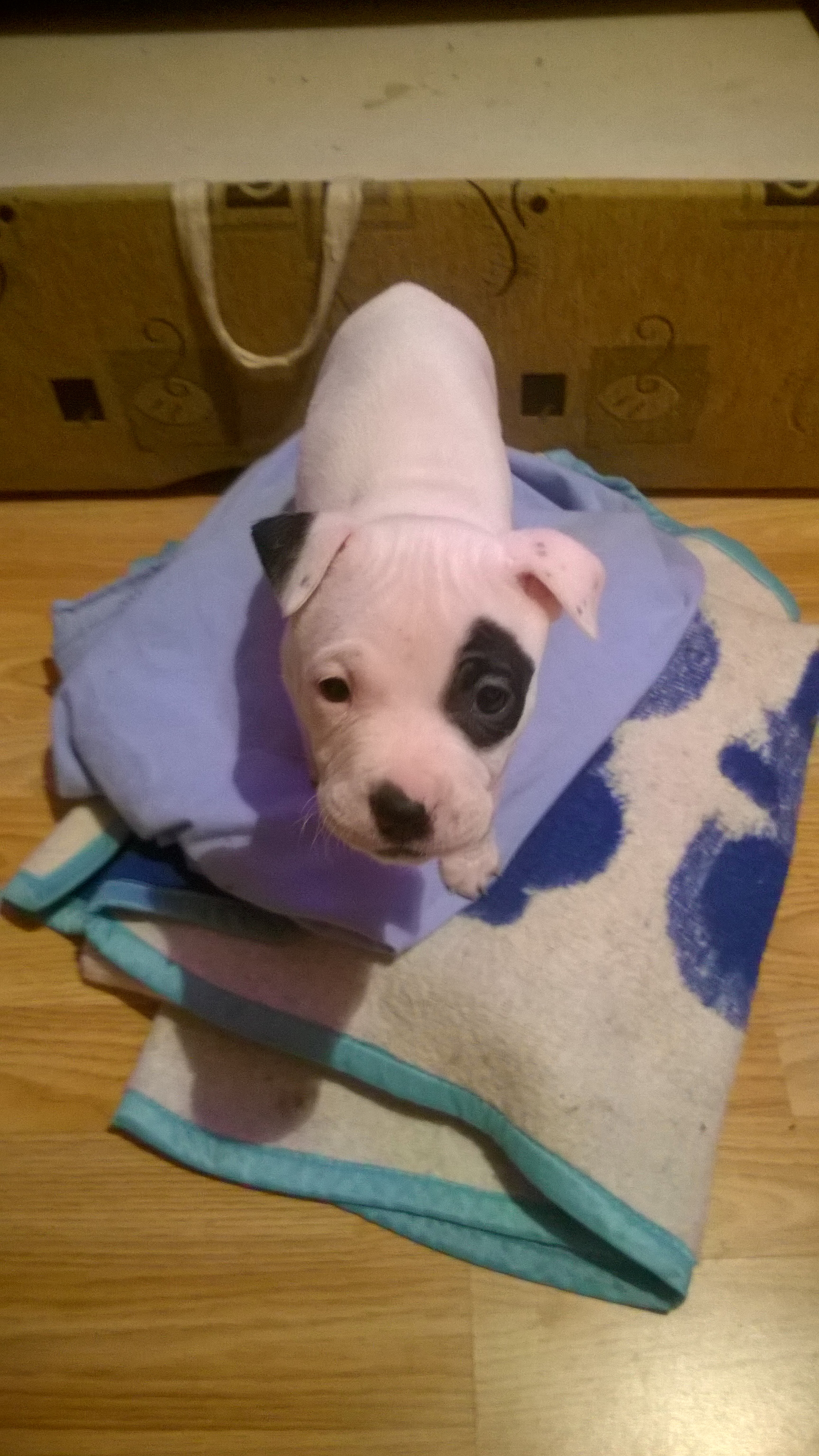Търсим нов дом за Рей.На навършени два месеца, роден на 31.12.2014.Напълно здрав, преминал през задължителен ветеринарно медицински преглед. Паспорт.Обезпаразитен вътрешно и външно.Първа ваксина. Подстригани уши. Дружелюбен, игрив, изпълнителен, през нощта може до стои сам в отделно помещение. Рей ще отиде при новия си стопанин с всичко, което е необходимо като за начало - кутия за спане, играчки, купички за храна/вода, памперс/пелени, които ползва за тоалетна, храна.